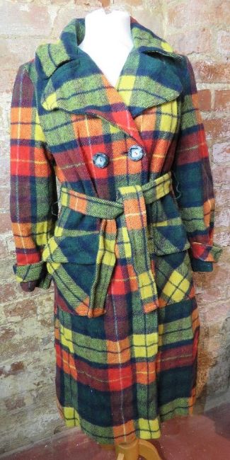 A Palomino Fashions woollen coat in greens, reds and yellow, belted waist, 3/4 length.