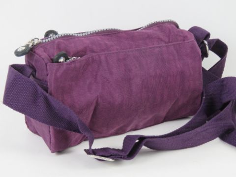An 'as new' fabric handbag in purple measuring 21 x 15cm.
