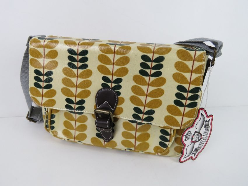 A leaf patterned handbag in yellow 'as new', approx 31 x 20cm.