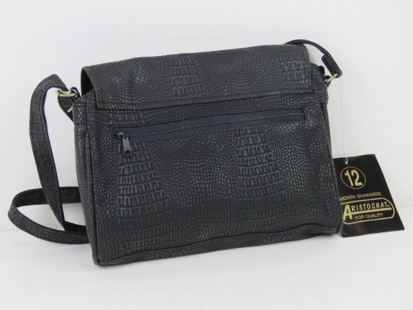 An 'as new' black faux reptile skin handbag 25 x 22cm.