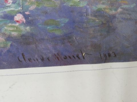 Print; Monet Waterlillies, framed and glazed in gold painted pine frame. Sight size 45 x 36cm, overall 65 x 54cm.
