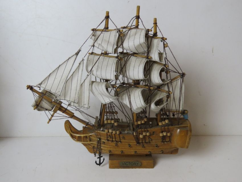 Three model sailing boats being Gorch Fock, Constitution and Victory.
