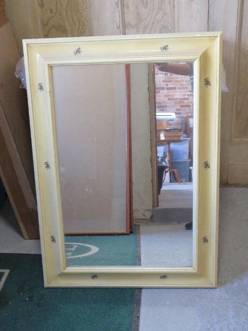 A rectangular wall mirror in decorative floral frame, overall size 57.5 x 81cm.