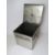 A chromed square shaped log or coal bin.
