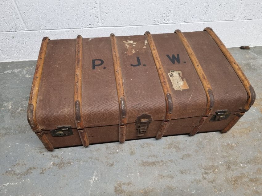 A steamer trunk having drop-in slide within measuring approx. 91cm wide.
