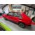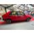 Red having grey and multi colour cloth seats.