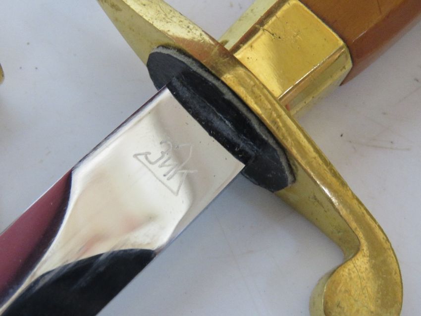 A Russian 1957 Army Officer's dagger with scabbard, with markings on both sides of the blade.