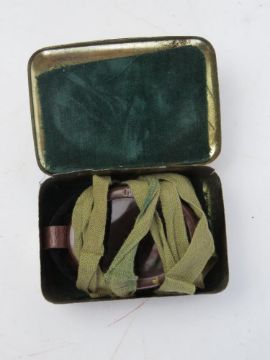 A pair of SOE Mk 1 Jump goggles with strap in original tin, with cleaning instructions.