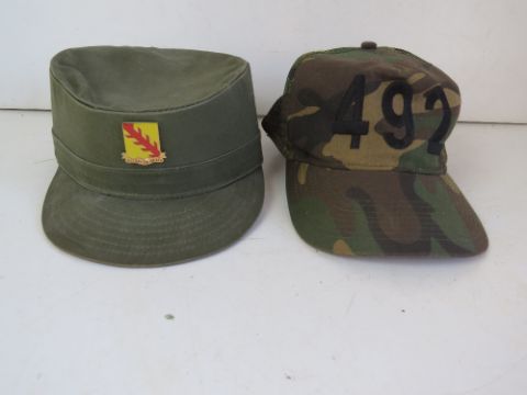 A US 32nd armoured cavalry regiment cap with badge size 7 1/8 and a 492 Otto camo cap.