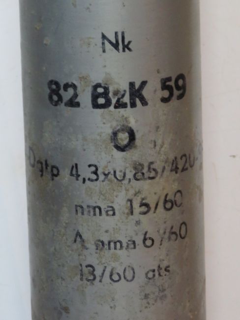 An inert 82mm NK 82 Bzk 59 shell with stencilling upon, approx. 95cm in length.