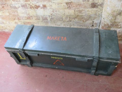 An inert Soviet 9M14 Malyutka missile in transit case.
