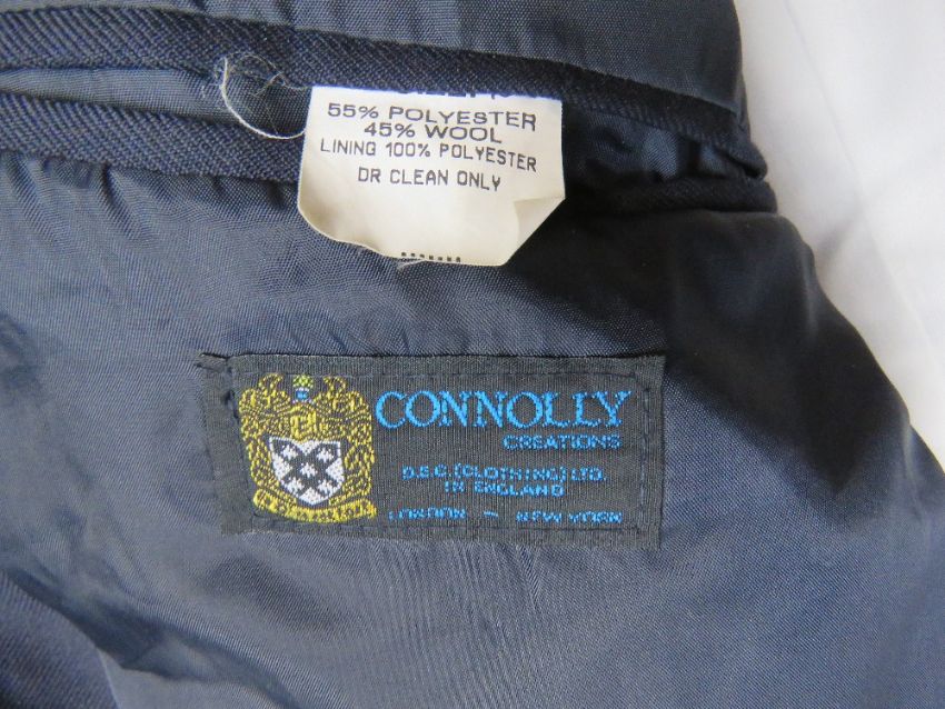 A pilot's uniform by Connolly Creations inc jacket (45% wool), shirt and trousers. Together with another pilot suit by Dennex being jacket, shirt and trousers. Both Size 40R.