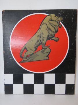 A painted advertising board featuring 'gold' lion measuring approx 60.5 x 71cm.