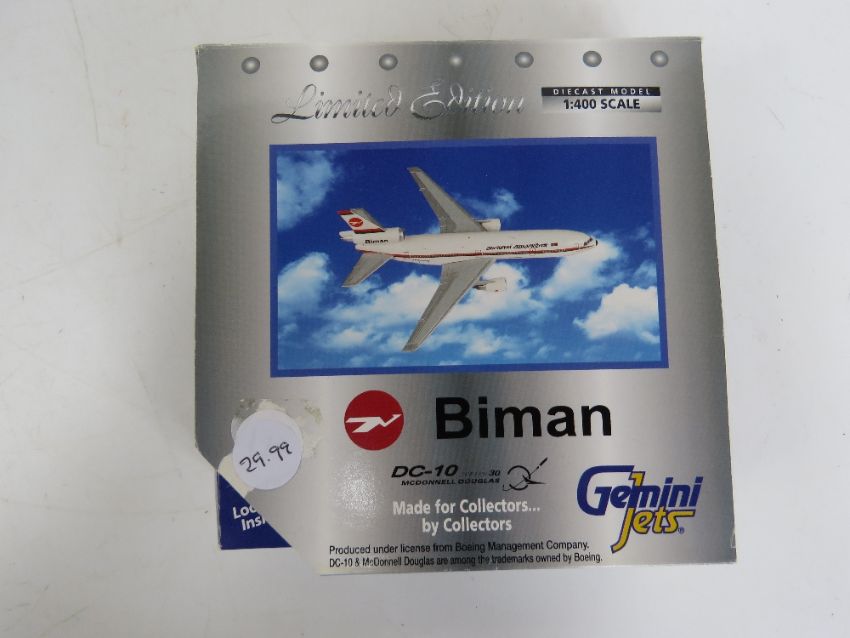 A Gemini Jets Limited Edition die cast scale model McDonnell Douglas DC-10-30 in Biman Bangladesh livery, Registration S2-ACQ, 1:400 scale, in original packaging.