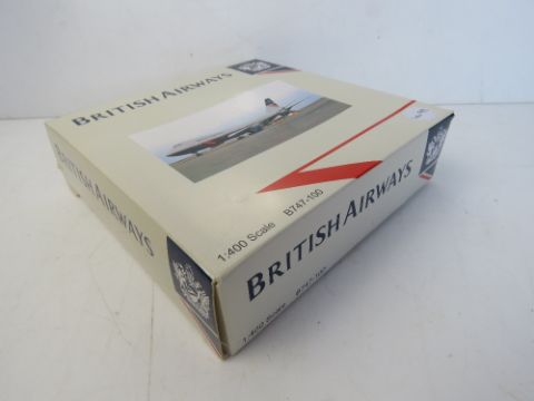 A British Airway die cast scale model Boeing 747-100 in 'To Fly To Serve' livery, 1:400 scale, in original packaging.