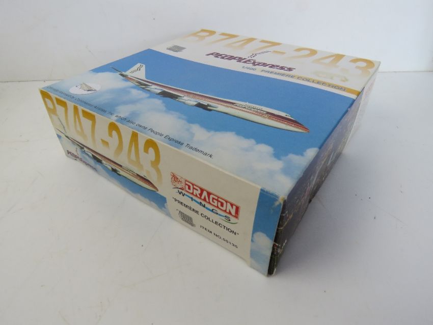 A Dragon Wings Premier Collection die cast scale model Boeing 747-243 in PEOPLExpress livery,1:400 scale, in original packaging.