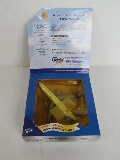 A Gemini Jets die cast scale model McDonnell Douglas DC-10-3- in National Airlines livery, Registration N82NA, 1:400 scale, in original packaging.