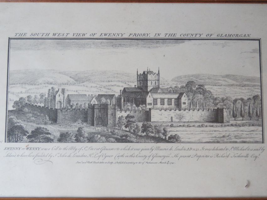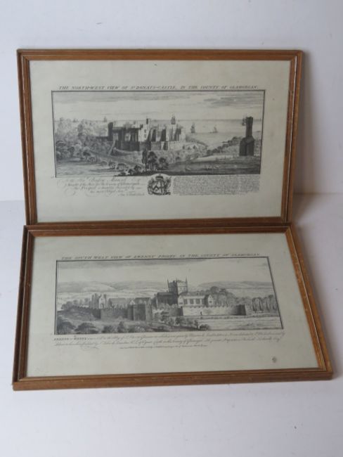 A pair of steel engravings from the County of Glamorgan, being St Donats Castle and Ewenny Priory in matching frames, each measuring 46.5 x 30.5cm overall.