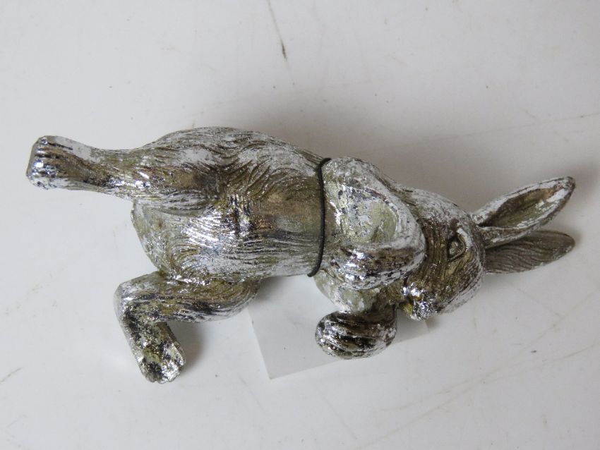 A silver painted rabbit wine cooler decoration, as new with tag.