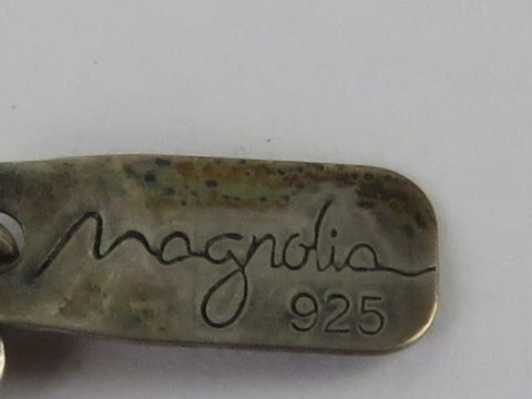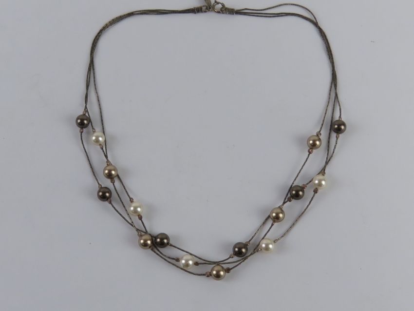 A silver and faux pearl necklace by Magnolia, stamped 925 with designer's label upon, in bronze and cream colours.