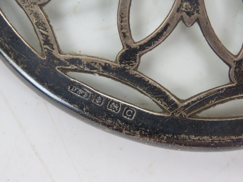 A hallmarked silver and glass coaster, HM for Birmingham, 12.5cm dia.