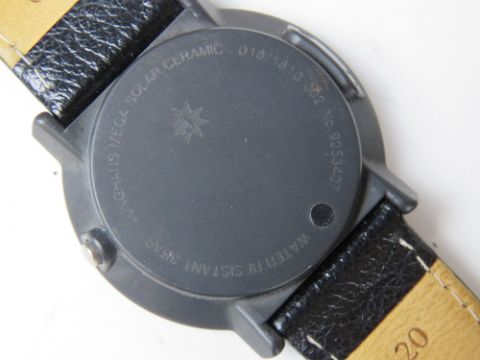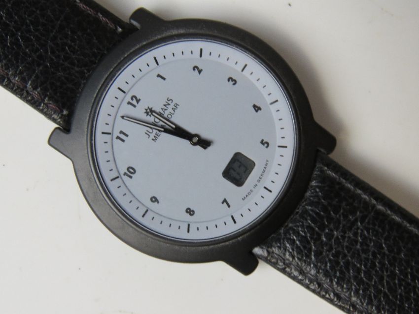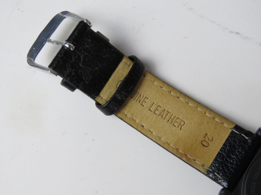 A Junghans Mega Solar Ceramic 018/1810 wristwatch having digital seconds aperture on grey dial with black leather strap numbered to case back 9253407.