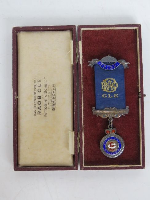 A hallmarked silver medal for the RAOB Royal Antideluvian Order of the Buffalos, City of Bristol Lodge, No 2874 dated 1933 in original Fattorini & Sons Ltd presentation box.