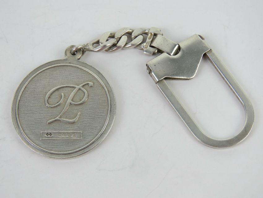 A hallmarked silver key chain having Masonic type rose design upon, 26.3g.