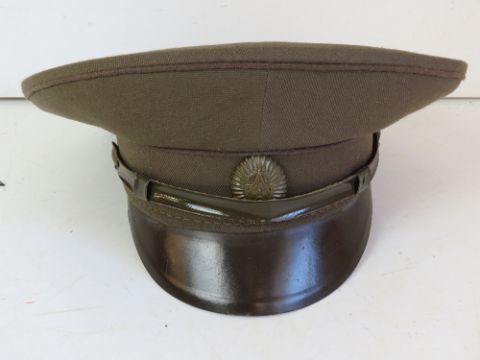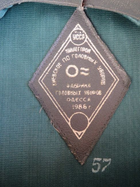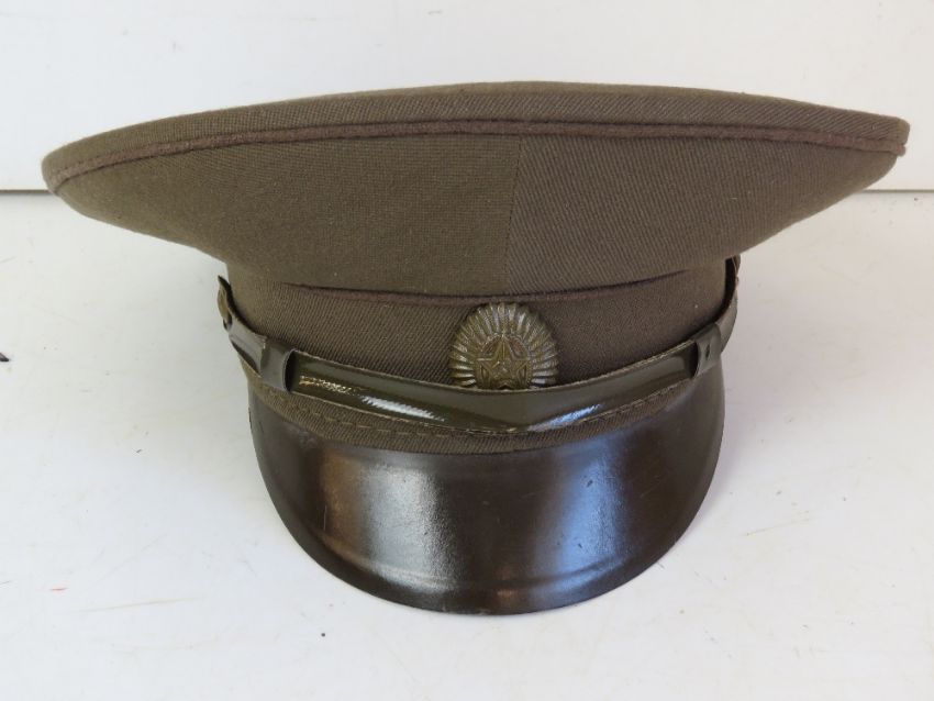 A Soviet Army Officers cap, dated 1986, size 57. Together with a Soviet KGB Army Officer cap, with original label, size 56.