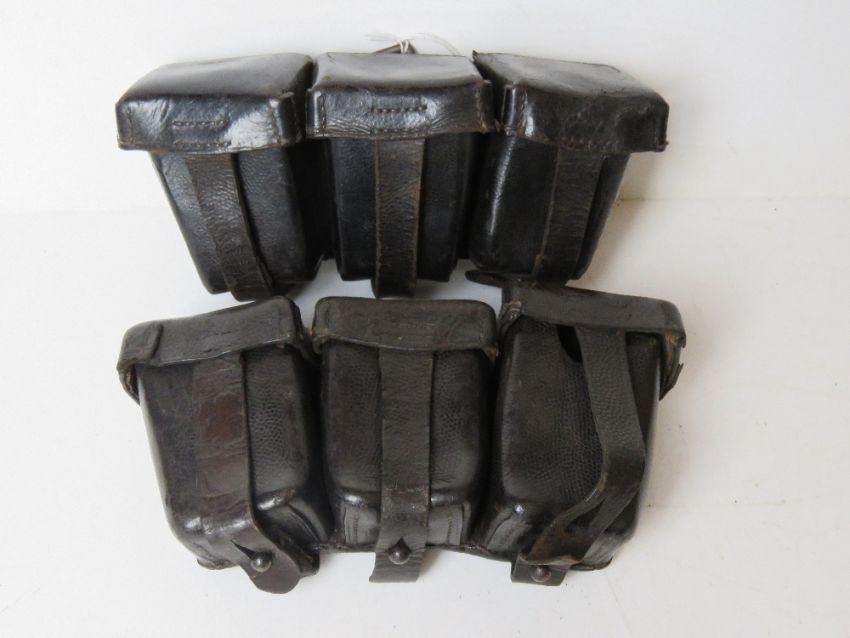 Two WWI German G98 ammo pouches, one dated 1916 Erfurt, the other dated 1916 as well.