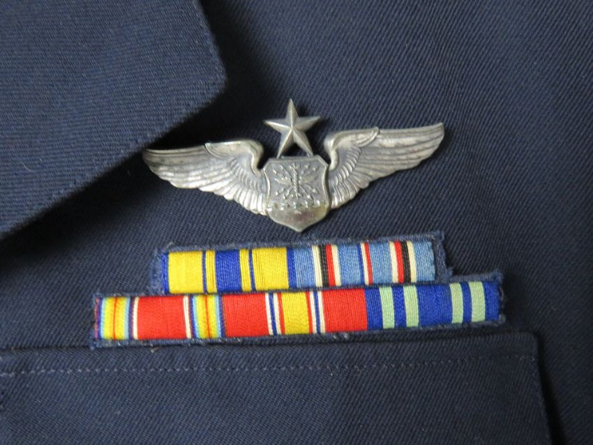A US Airforce Officers short jacket (or Ike jacket) with Major rank medal bars.