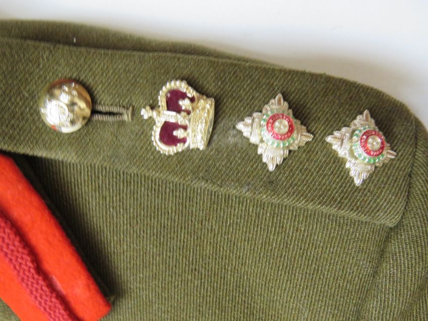 A British Army No 2 dress tunic, bearing label for Hawkes of Saville Row, having patches and badges upon.