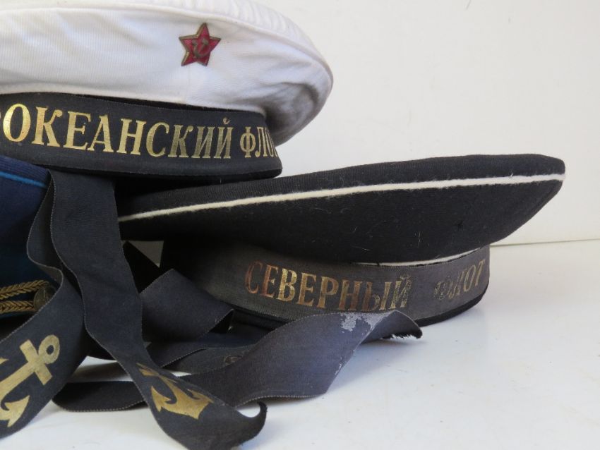 A Soviet Officers Airforce Cap size 58, a Soviet Northern fleet sailors cap size 54 and a Soviet Pacific fleet sailors cap size 55.
