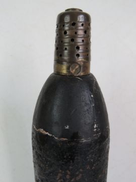An inert WWI French 75mm shrapnel shell, date indistinct, shell further marked L344 14 P.