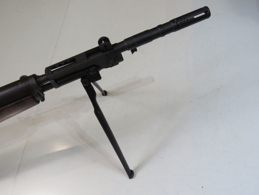 A deactivated Italian Beretta BM-59 7.62 NATO calibre rifle, with sling. Latest EU Spec, with working cocking handle (under spring pressure), safety, trigger, fire selector, removable magazine, fold down winter trigger and fold up grenade sights and bipod. With certificate.
