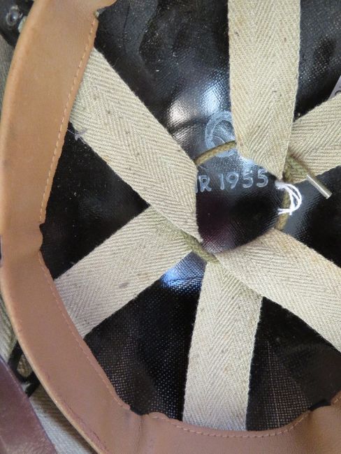 A US M1 helmet with Airborne decals either side, and a line dated 1955.