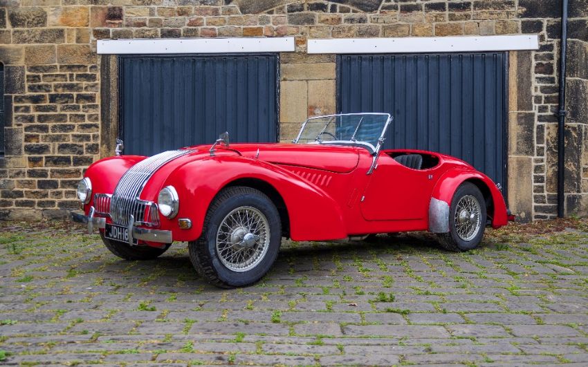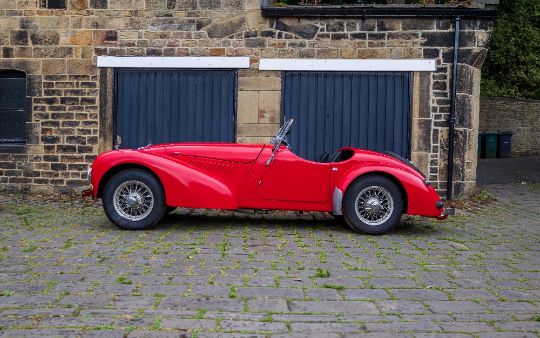 1948 Allard K-Series Tourer Registration: JDH 169 Chassis No: 71K/633 This striking K-Series two-seat sportscar in Red looks an eyeful and sits 'just right'. The side profile view of this car is perhaps the most pleasing. The paintwork is largely good, as is most of the brightwork. The tyres (undated) have good tread but likely need replacement for safe road use. The interior is in Black with black carpet and appears largely complete. The seats are a good shape, but the poor condition Bluemel's Brooklands steering wheel and heavily stained dashboard fascia need attention. It houses a reputed 4410cc V8 engine with 3-speed manual gearbox. It has been owned by the Lockey collection since the early 1980's. It is accompanied by V5C, old-style V5 and duplicate buff logbook. As with nearly all the cars in this collection this car has been subject to restorative works some time ago, and as such, some recommissioning will be required. Whilst some of the cars do run, they are not roadworthy in their current form, and all should be trailered away from the auction. Video and further photographs are available on request. Viewing is available by appointment. Please contact the office on admin@humbertellis.com or 01327 359595