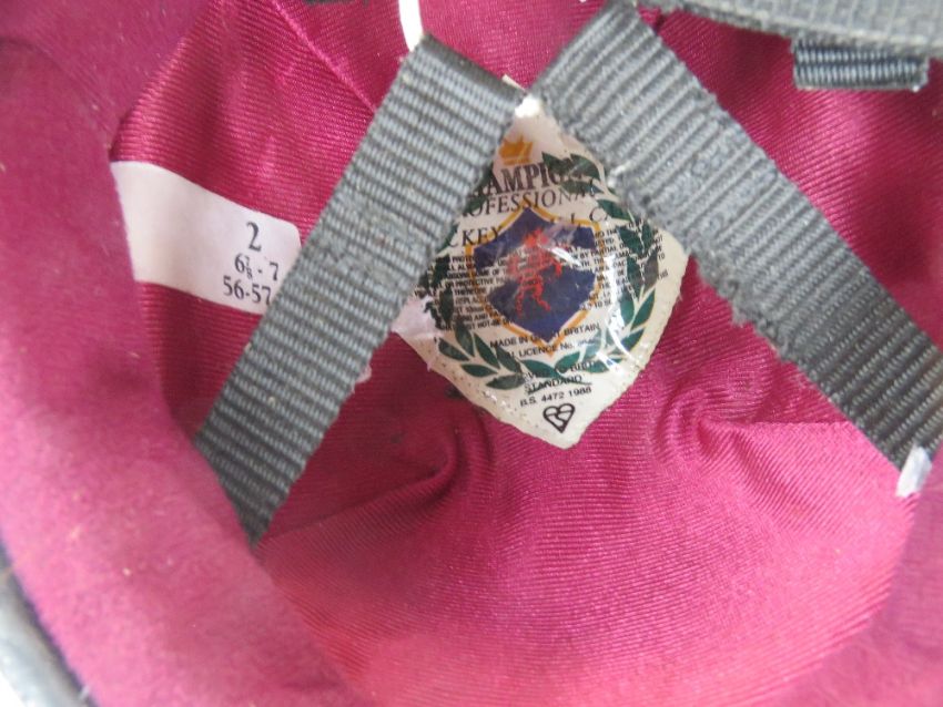 Two horse riding helmets for decorative purposes only. The larger being size 6 7/8 - 7.