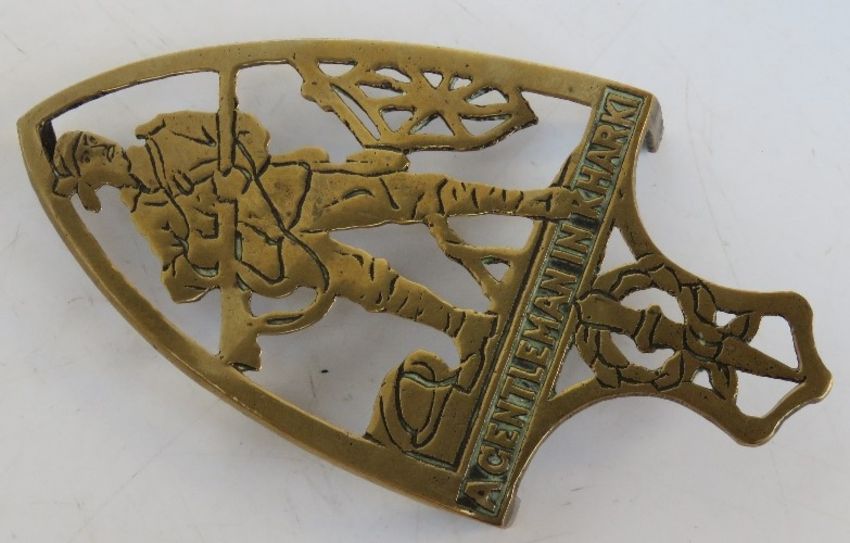 A brass iron trivet 'A gentleman in Khaki' approx 16.5cm in length.