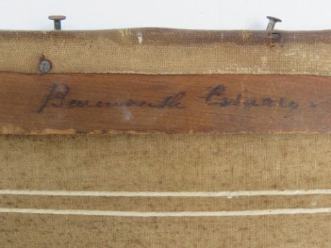 Oil on canvas of a castle with mountains beyond, signed indistinctly lower right and dated 1900, having inscription to back, measuring approx 45.5 x 30.5cm