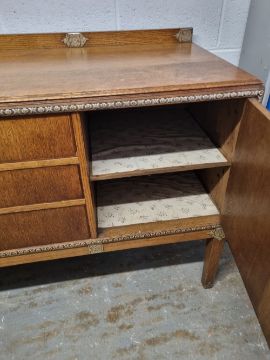 A delightful early 20th century oak dresser having silver painted floral carving throughout, measuring approx 167 x 58 x 95cm.