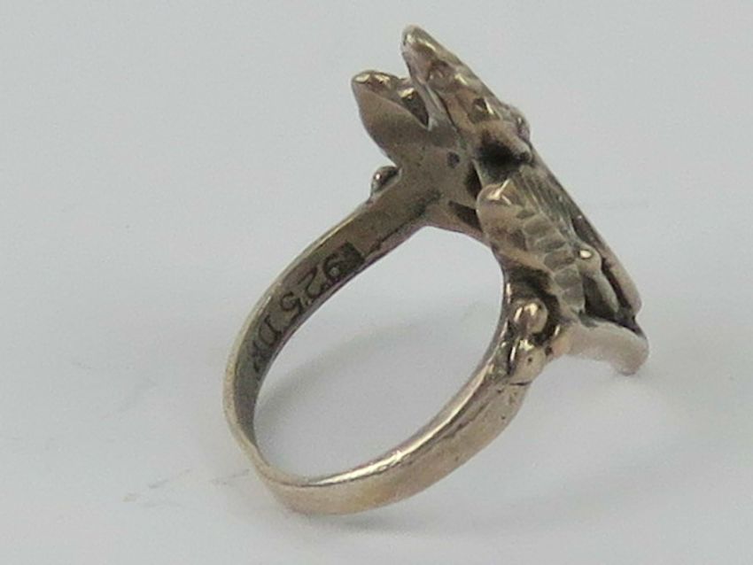 A silver ring having triple leaf design, stamped 925, size H.