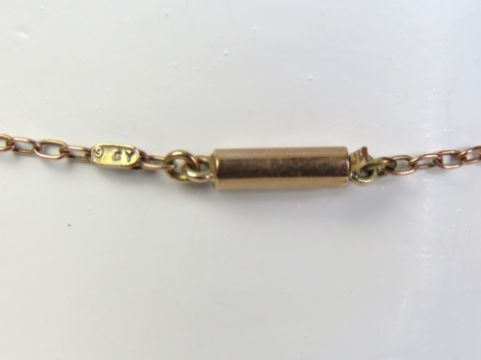 A superb antique cross on 9ct rose gold chain, the top of the pendant having five claw set tourmaline gemstones (green, light green, white, purple and purple tint) the articulated lower section set with three further green tourmaline stones. The chain stamped 9ct no stamp to the pendant. Pendant measuring 6.6 x 2.6cm inc hook removable bale. Central stone 7.4 x 6.7 x 4.4mm (approx 1.5ct), cardinal point stones each measuring approx 6.5 x 5 x 3.5mm (each approx 0.8ct). Total weight 5.4g. In contemporary presentation box.