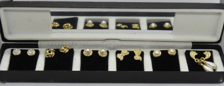 A set of six c1980s Pierre Cardin stud earrings in original box.