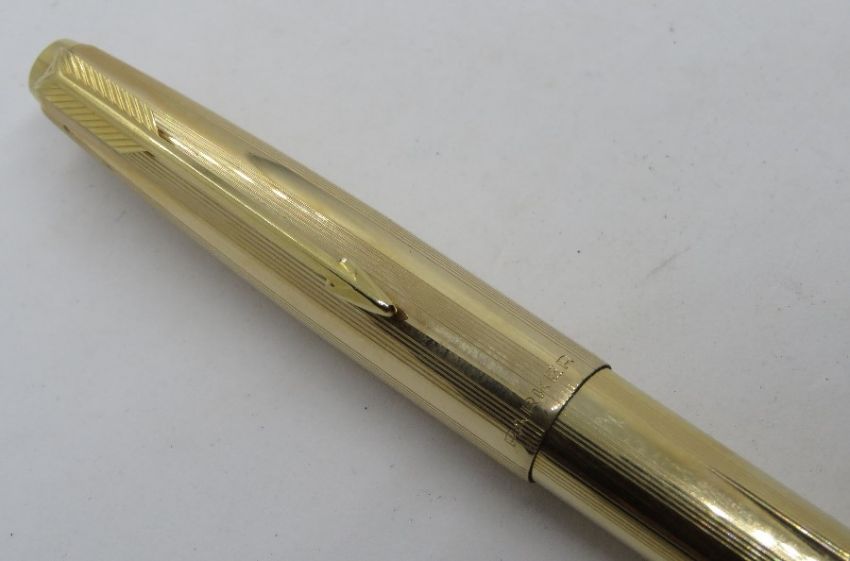 A Parker '61' custom insignia fountain pen, rolled gold, vertical lines with plain bands, c.1975.