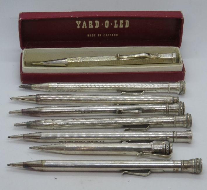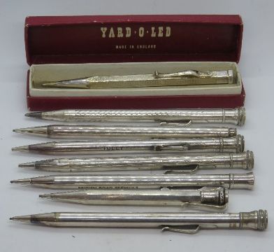 A quantity of silver plated propelling pencils inc Yard-O-Led in box and seven Eversharp.