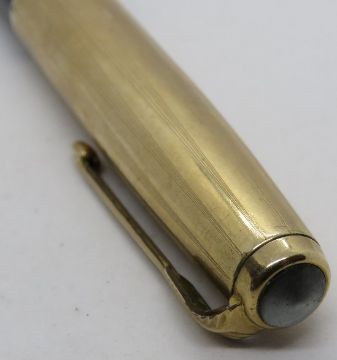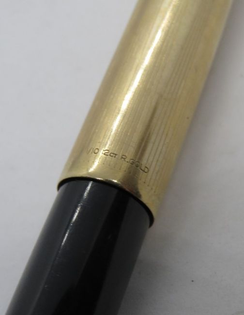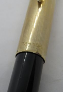A Parker '51' fountain pen, black with rolled gold cap, aerometric fill.