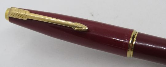 A Parker (USA) '45' De Luxe fountain pen, dark red with medium nib, aerometric fill, c.1967.