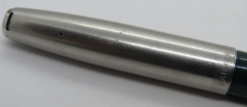 A Parker (USA) '21' fountain pen, green with stainless steel cap, no clip, c.1948