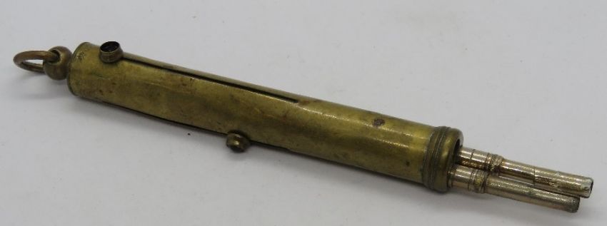 A Johann Faber (Nuremburg) tri-colour propelling pencil, brass barrel, c.1878.